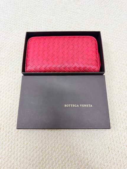 Bottega Veneta Intrecciato Woven Red Leather Long Wallet