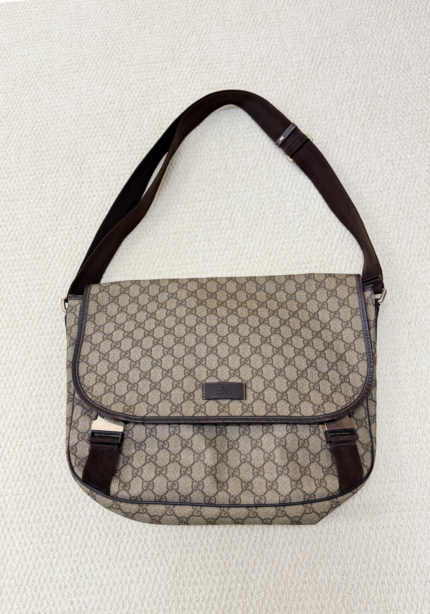 Gucci GG Supreme Canvas Messenger Bag in Beige/Ebony 100% fully authenticated (no fakes here!). Crafted from Gucci’s iconic GG Supreme