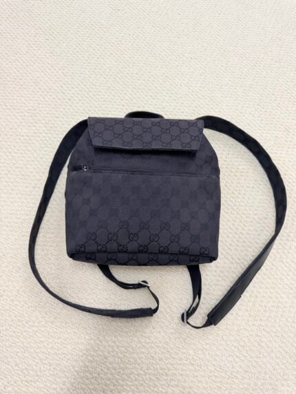 Gucci GG Supreme Canvas Backpack in All-Black 100% fully authenticated (no fakes here!). Crafted from Gucci’s iconic GG Supreme coated