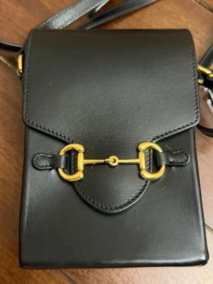 GUCCI Horsebit 1955 Black Leather with COA Shoulder Bag