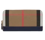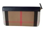 NEW BURBERRY CHECK BROWN CANVAS ZIP AROUND LONG WALLET w/Navy Accent – Authentic