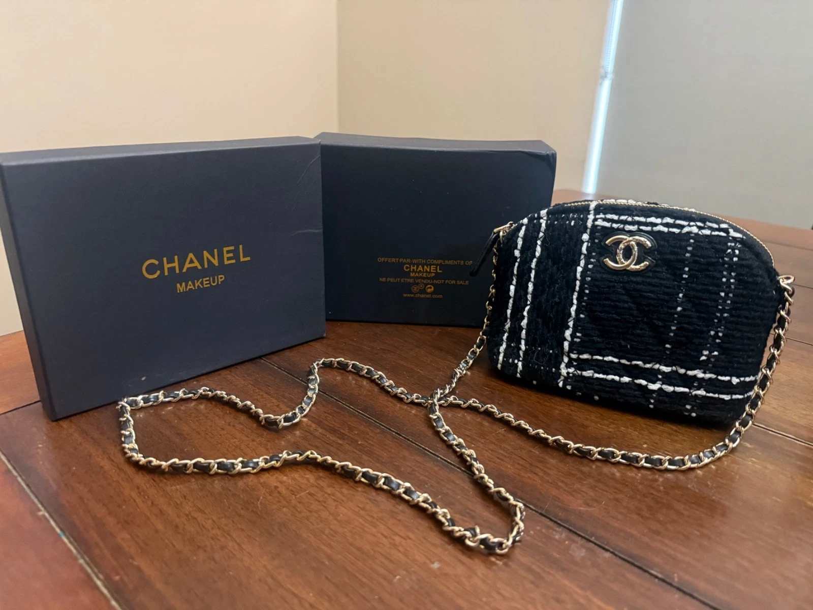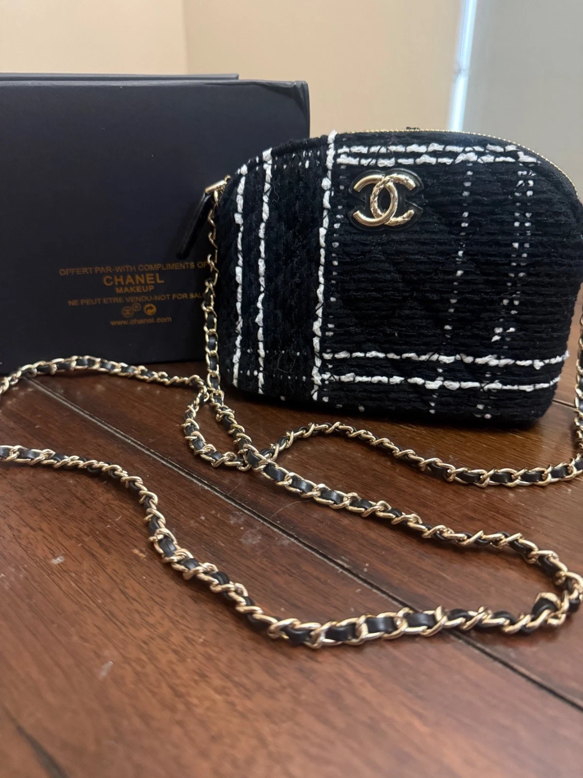 Chanel Mini Black Tweed GWP novelty crossbody purse
