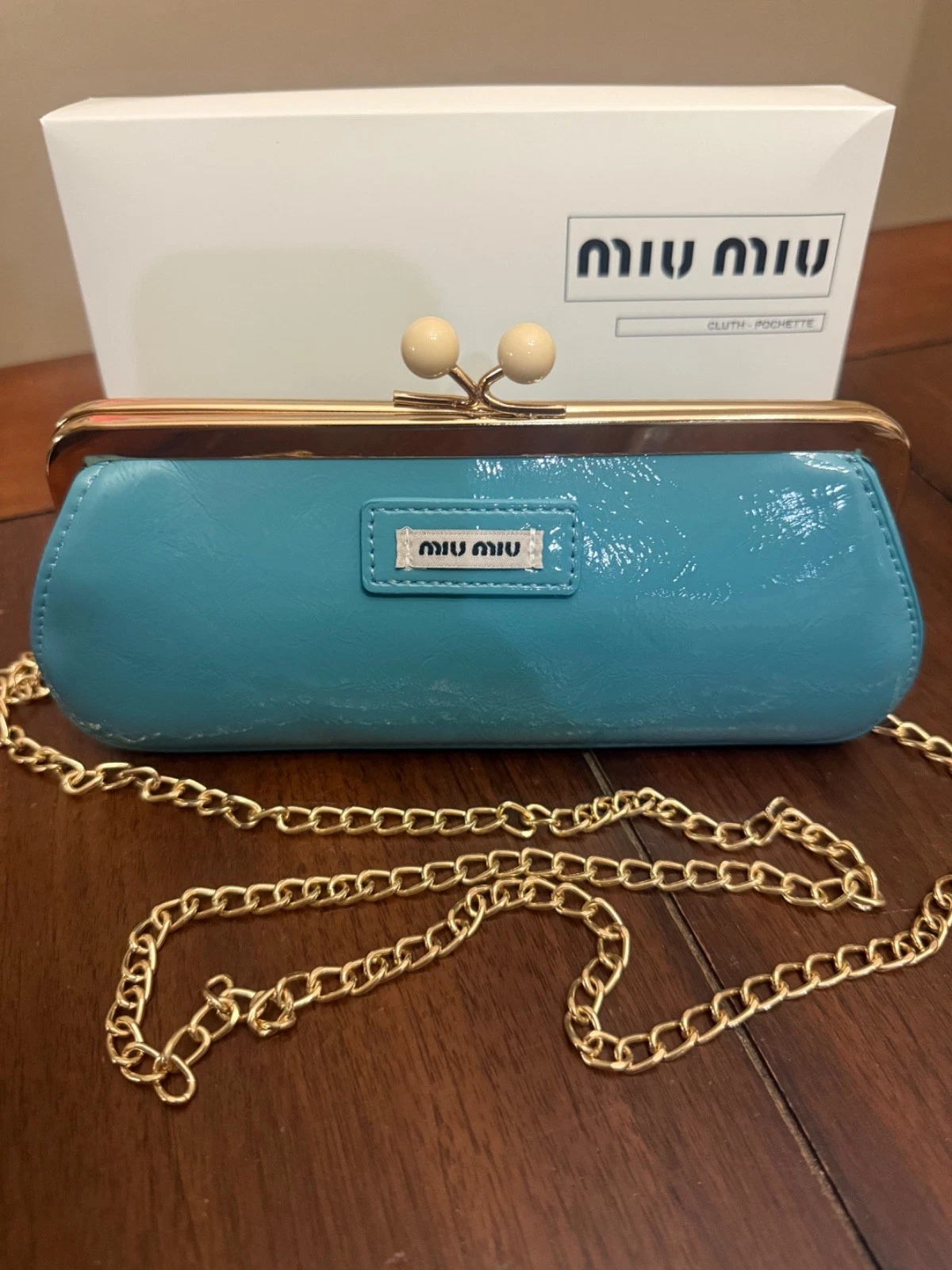 Miu Miu Turquoise Blue Crossbody Clutch Brand New in Box Purse Pochette