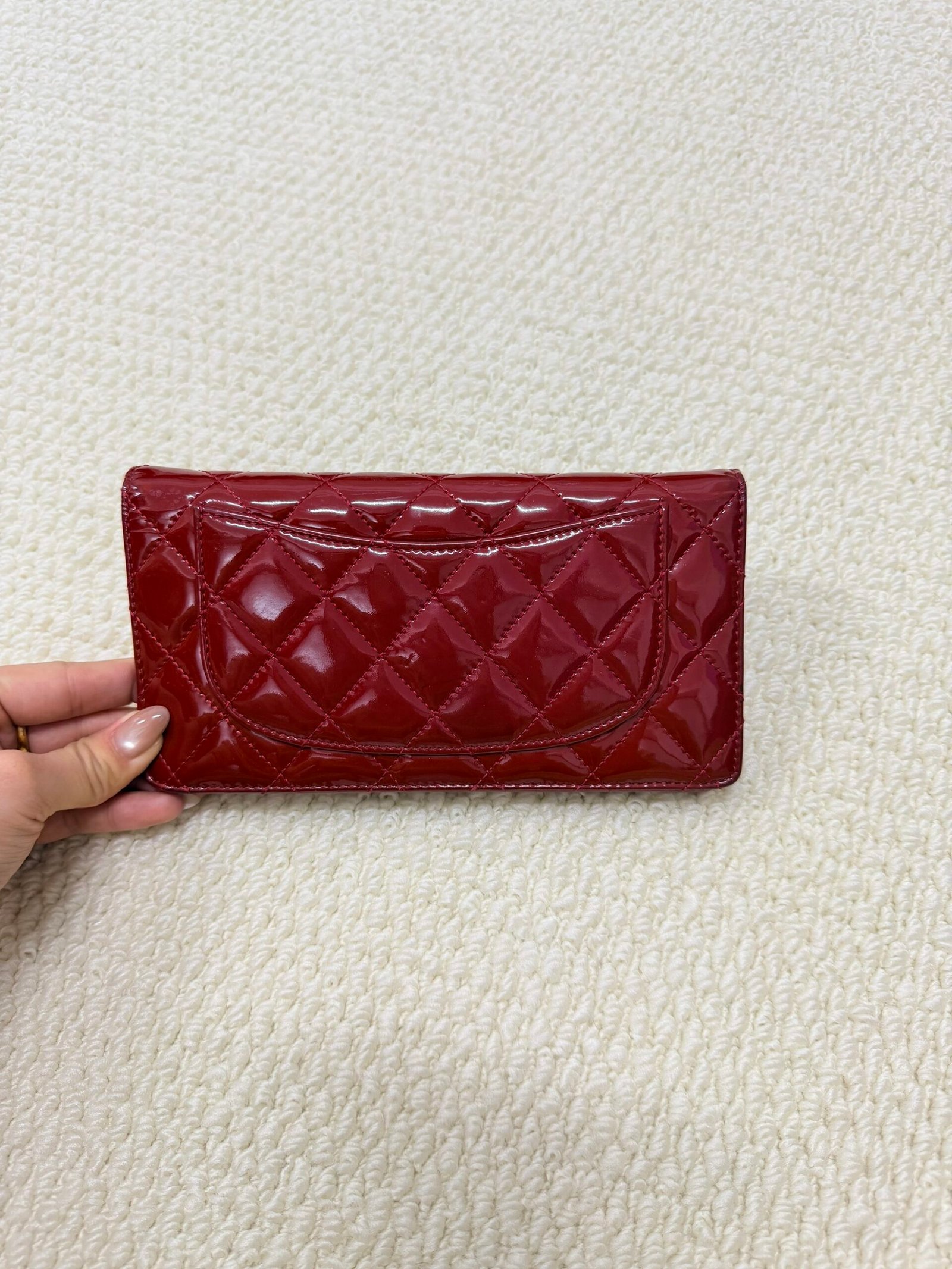 Be the first to review “Chanel Classic Quilted Long Wallet in Burgundy Patent Leather”