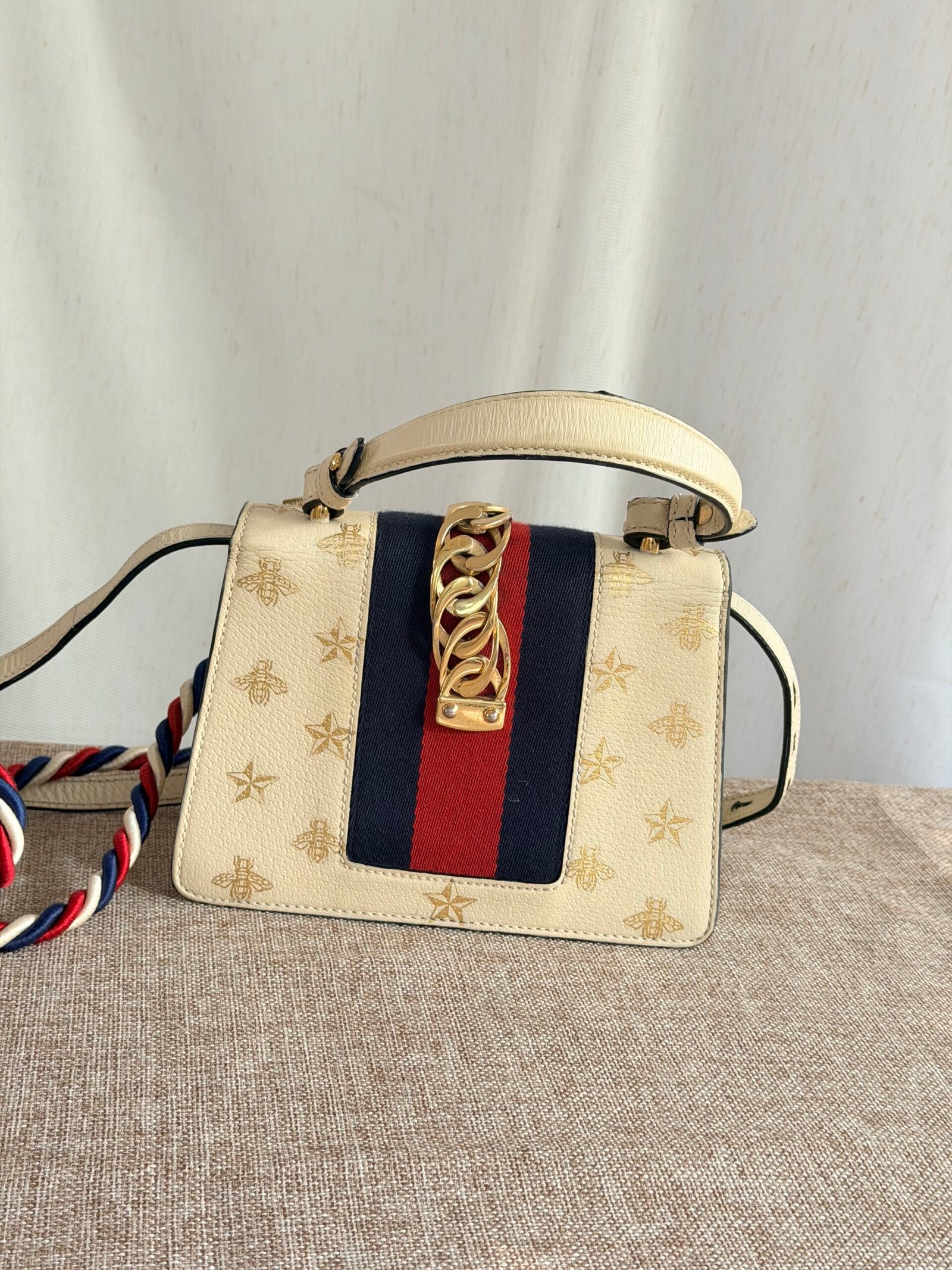 Be the first to review “Gucci mini Sylvie Bee Star leather top handle bag” Cancel reply